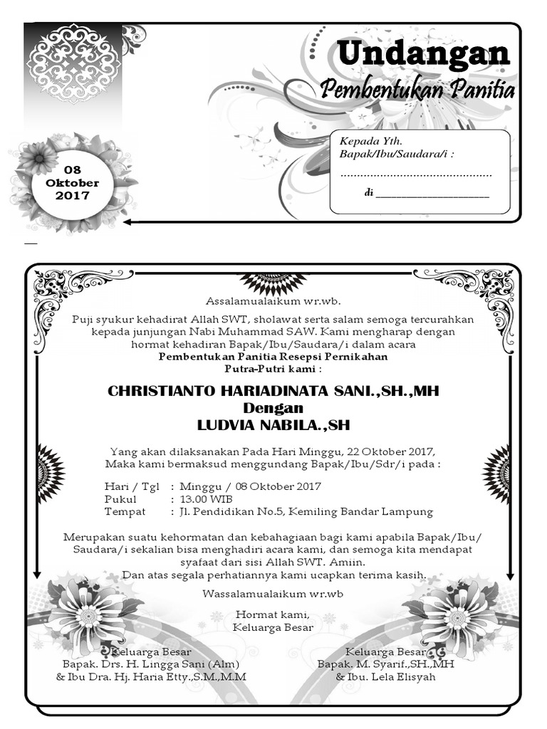 Contoh undangan panitia pernikahan word.
